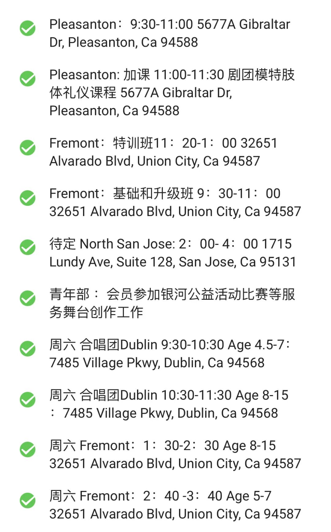 课程每周六 北Fremont/Union City